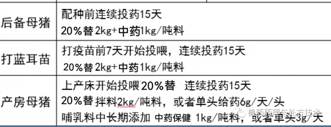 替米考星、泰萬菌素屬新一代大環內酯類抗生素,這兩種新的大環內酯類抗生素有比傳統大環內酯類抗生素如紅霉素和泰樂菌素更強大的抗菌作用。其抗菌譜覆蓋胸膜肺炎放線桿茵、副嗜血桿菌、巴氏桿菌、支氣管敗血波氏桿菌、鏈球菌、支原體、立克次體、衣原體和弓形體等。在抑制藍耳病毒復制方面,泰萬菌素、替米考星”兩個藥,不同陣營各言之鑿鑿,都有各自的擁躉,世人也頗有瑜亮情結。那么在抑制藍耳病毒復制方面到底哪個更有優勢呢?泰萬菌素:藥物分布“廣”,雖然其在巨噬細胞內的濃度更高!但特點是口服吸收后更傾向于“全身分布”,這意味著落實到肺組織的藥物被“攤薄”了。替米考星:藥物分布“聚”,因為靶器官與藍耳病毒高度雷同,意味著能將幾乎所有的藥物“聚焦”到肺部組織和乳腺組織。這就是說,兩種藥各有特點,惟正確使用才能更好的發揮各自優勢。1、藍耳病穩定豬群,泰萬菌素“分配”到生殖系統、肺組織的濃度,夠了!此時,其控制并發癥(先細菌后病毒順序)更強的特性就體現出來了。2、藍耳不穩定豬群,首選替米考星!其它功效暫且不論,壓制藍耳病毒它更具針對性。1、對于藍耳病處于活躍期的母豬和公豬群,使用替米考星與七清敗毒顆粒中西結合,每月拌料給予兩周、停兩周,如此持續三個月可穩定。而對于那些處于穩定期的母豬和公豬群,上述中西結合方案三個月用一次即可,一次用十五天。農業部注冊的替米考星的使用劑量為200~400毫克/公斤拌料,連續使用7~14天。按要求拌料劑量為200~400克/噸,而目前市面替米考星預混劑含量多為20%,即20%替米考星拌料濃度為1~2公斤/噸(使用包被工藝的替米考星具有同等用量上藥效更好的特點)。替米考星味苦過重,若胃排空慢,則藥物在胃中停留的時間久,與胃粘膜接觸的機會和面積就會增大,增加對胃黏膜刺激,造成胃潰瘍風險過高因此在使用替米考星時應對豬群控飼一段時間,然后拌料投藥,此時藥物在胃內只會短暫停留,就會被很快排入小腸。替米考星可以和四環素類如多西環素配伍協同增效。而替米考星同氟苯尼考機理相似,但替米考星組織穿透力強、在肺組織中的藥物濃度是最高的,從而靶向有效控制、治療動物呼吸道疾病。因此臨床上氟苯尼考與替米考星配伍同樣可增強療效。